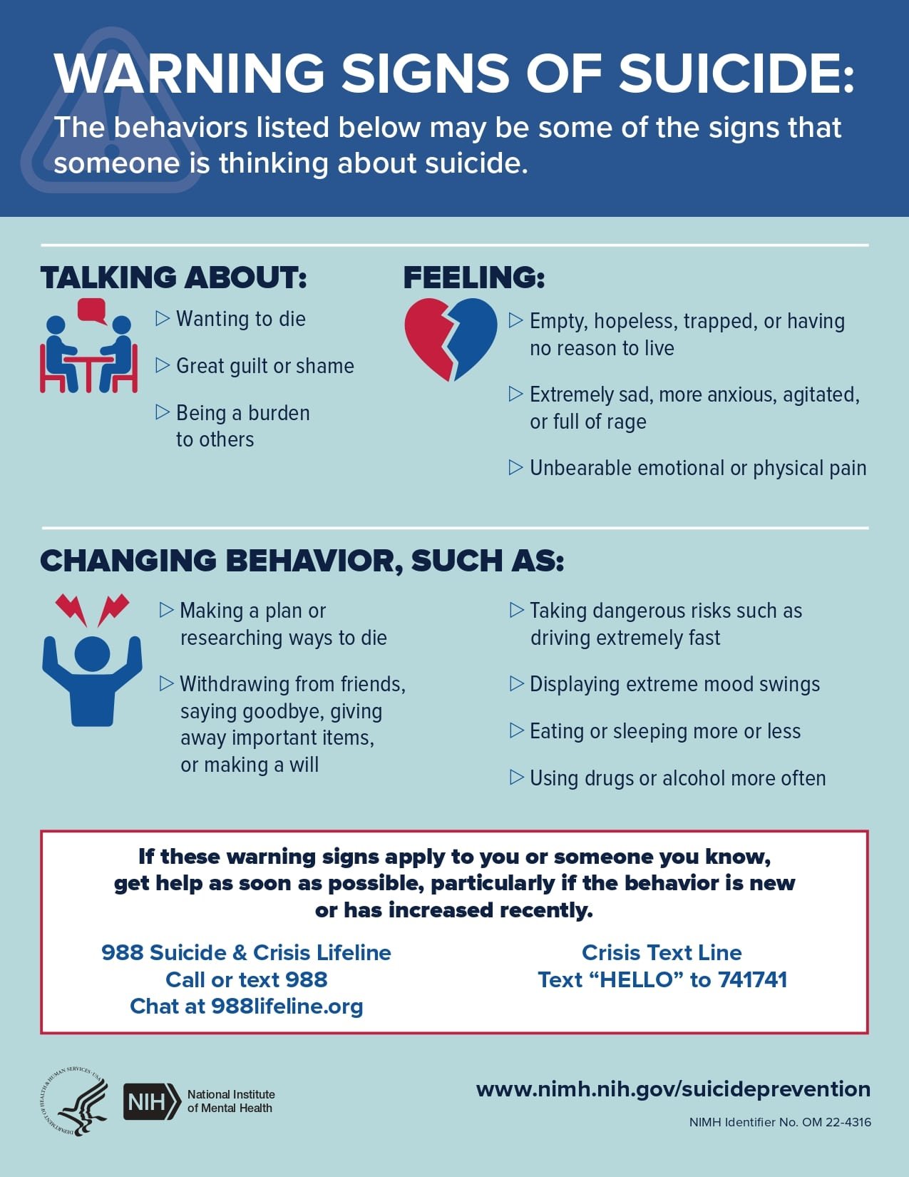 Suicide Prevention Resources NAMI Suicide Prevention Data/Resources Minnesota Suicide Prevention Resource List Mental Health Awareness Month Toolkit Suicide Prevention & Postvention Organizations Map in MN Suicide and Crisis Line Call or Text: 988